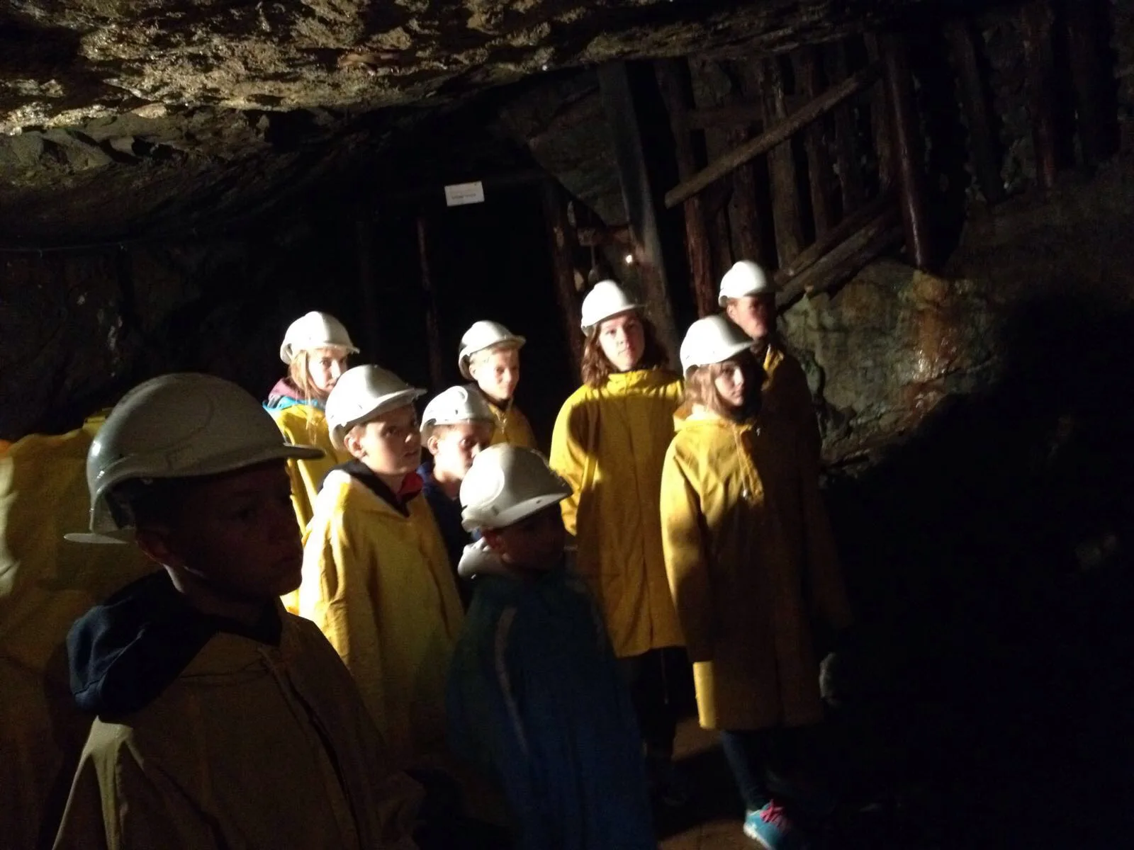 Heute waren wir im Bergwerk und dort hatten wir anderthalb Stunden eine Führung von einem Arbeiter. Dort angekommen, haben wir Helme und Jacken bekommen. Die großen Menschen mussten im Bergwerk die Köpfe einziehen, um nicht an die Stollenwand zu hauen. Dort gab es auch einen See, an dem früher auch Paddler waren. Als wir aus dem Bergwerk herauskamen, haben einige noch Kristalle und ähnliches gekauft.