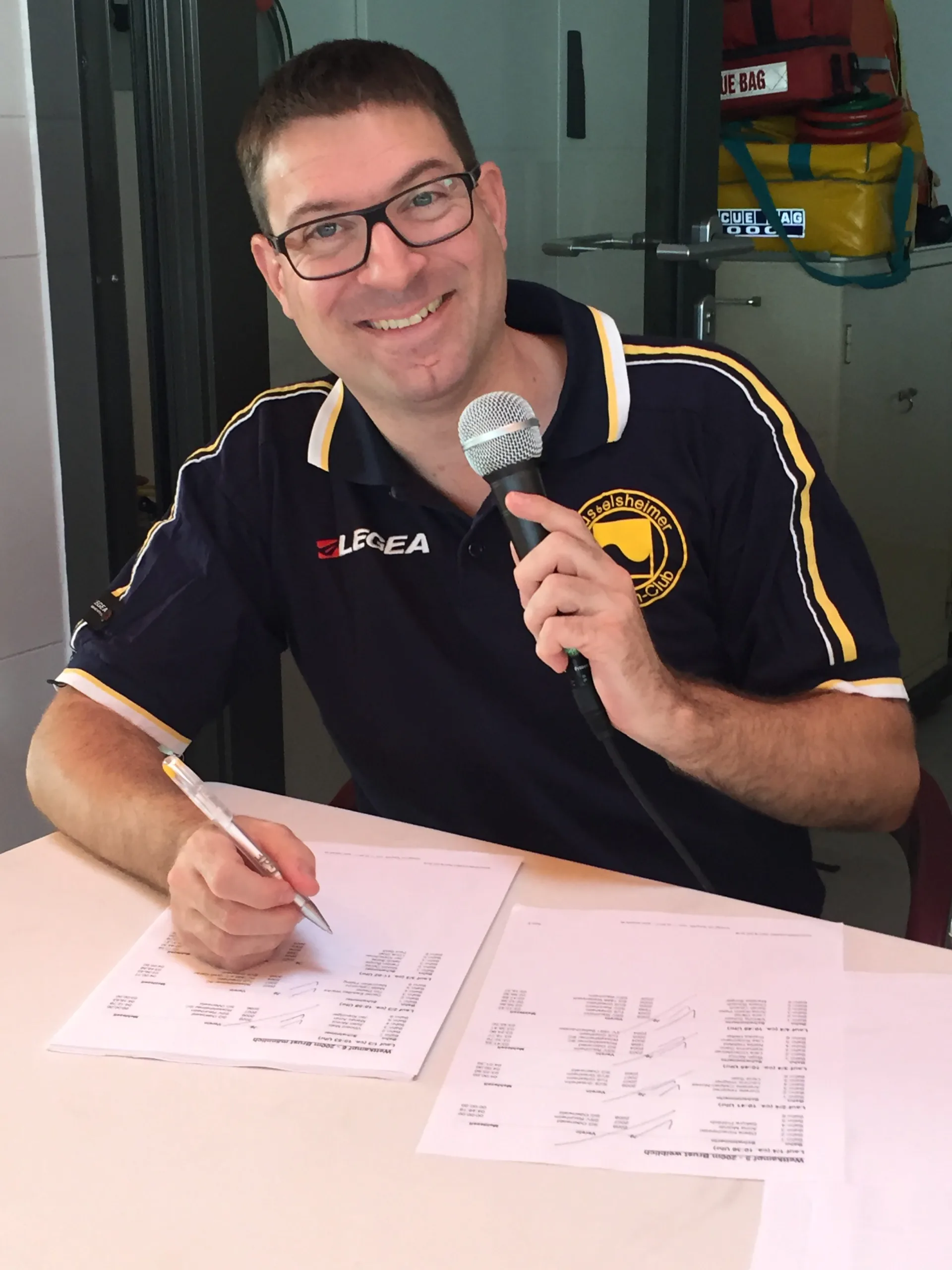 Ingo Hühn, unser 1. Vereinsvorsitzende, hieß zuerst alle Teilnehmer und Gäste herzlich willkommen und gab anschließend das Mikrofon an Werner Freitag, Ehrenpräsident des Hessischen Schwimmverbands, weiter: „In meiner jahrzehntelangen Laufbahn habe ich noch nie einen Wettkampf mit so vielen Starts angekündigt“, resümierte dieser und zeigte sich begeistert. Zum Abschluss freute sich Oberbürgermeister Udo Bausch aus Rüsselsheim über die Vielzahl der Teilnehmer, lobte stolz das neue Hallenbad und eröffnete pünktlich um 10.00 Uhr offiziell die Kreismeisterschaften. Währenddessen lauschten etwa 300 Anwesende gespannt, einige Wettkämpfer eher bereits angespannt. Und wie geplant fiel bereits wenige Sekunden nach der letzten Ansprache der erste Startschuss und damit auch endlich die Aufregung der Organisatoren des Rüsselsheimer Schwimmclubs.