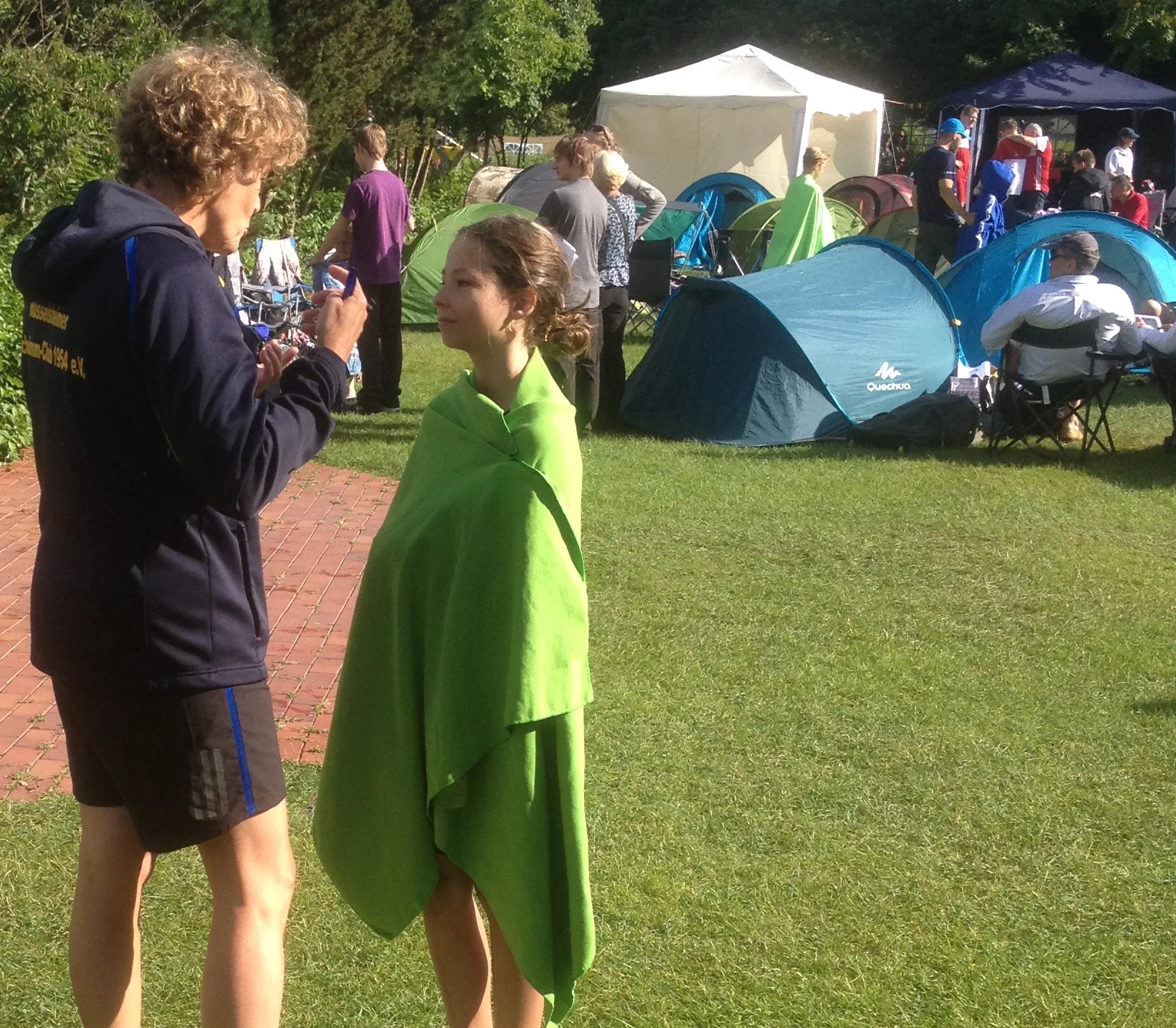 Zu guter Letzt setzte sich die neue Wettkampfrichterin Nina noch einem ganz anderen Kampf aus. Ungleich, unfair, tückisch kam der Angriff von hinten. Anschließend flog die Wespe als Sieger und zufrieden von dannen… glücklicherweise konnte gleich mit Eis ausgeholfen werden.